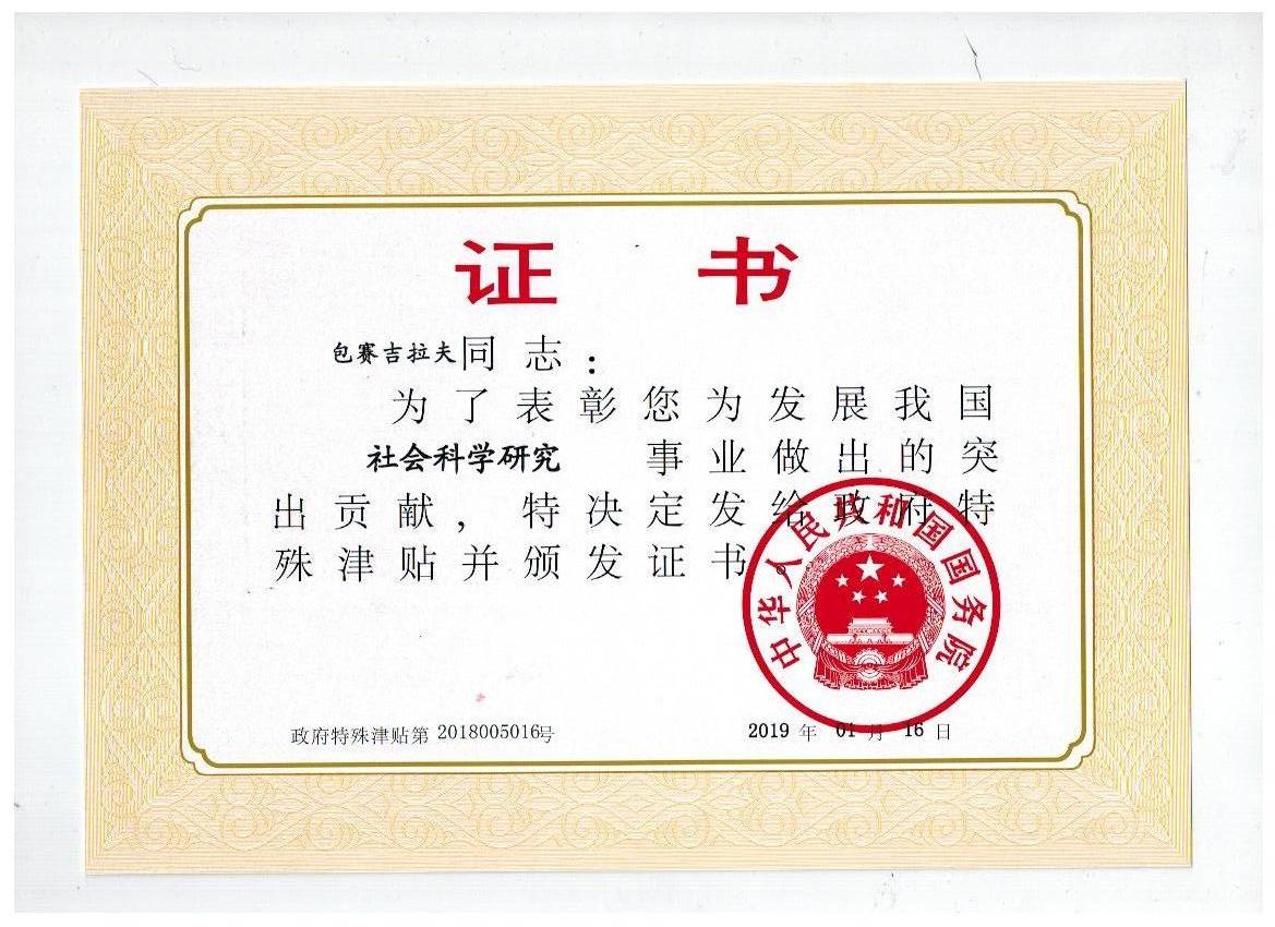 包賽吉拉夫教授榮獲“國務院政府特殊津貼”