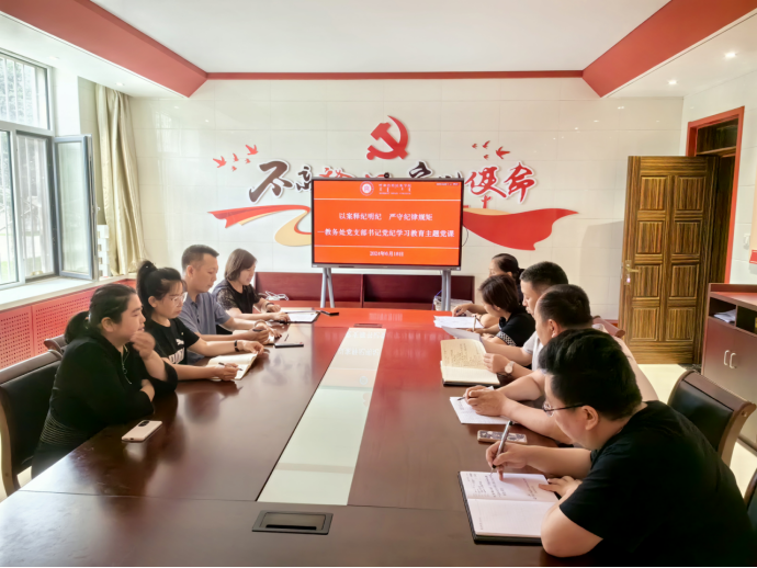 根據學校《黨紀學習教育實施方案》要求,為扎實推進黨紀學習教育,6月18日上午,教務處黨支部在辦公樓103會議室開展支部書記黨紀學習教育主題黨課。黨支部書記肖查娜以《以案釋紀明紀,嚴守紀律規矩》為題,通過深入剖析典型案例,教導全體黨員干部以此為鏡,警醒自我,明確紀律,堅定規矩。