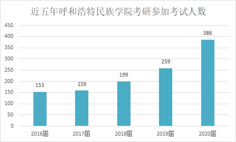 春種夢想,夏育成長,秋實可輟。呼和浩特民族學院2020屆本科畢業生共1790人,其中參加研究生考試人數為386人,報考率達21.56%,錄取率為3.18%,相比2016年增長146%。通過國家分數線的考生82人,占全部考生的話21.24%,考取碩士研究生57人,考研率為14.77%。