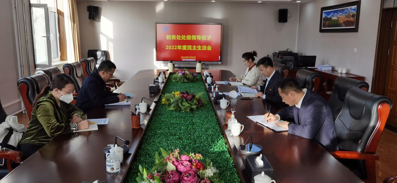 根據(jù)學(xué)校《關(guān)于召開 2022 年度全校處級黨員領(lǐng)導(dǎo)干部民主生活會的預(yù)通知》要求,3月8日上午,教務(wù)處領(lǐng)導(dǎo)班子在辦公樓3樓會議室召開2022年度民主生活會。校黨委組織部副部長白秀和督導(dǎo)員蘭蘭同志到會指導(dǎo)。會議由教務(wù)處處長額爾敦布和主持,教務(wù)處領(lǐng)導(dǎo)班子成員哈斯額爾德尼、佟繁榮參加會議。