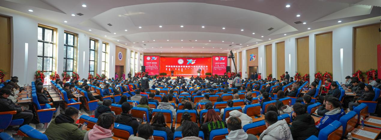 七秩奮斗鑄就輝煌,砥礪奮進再譜華章。12月18日上午,呼和浩特民族學院建校70周年慶祝大會在百年講堂隆重舉行。迎來70華誕的呼民院校園內彩旗飄揚、氣氛熱烈,處處洋溢著喜慶氛圍,煥發著勃勃生機。