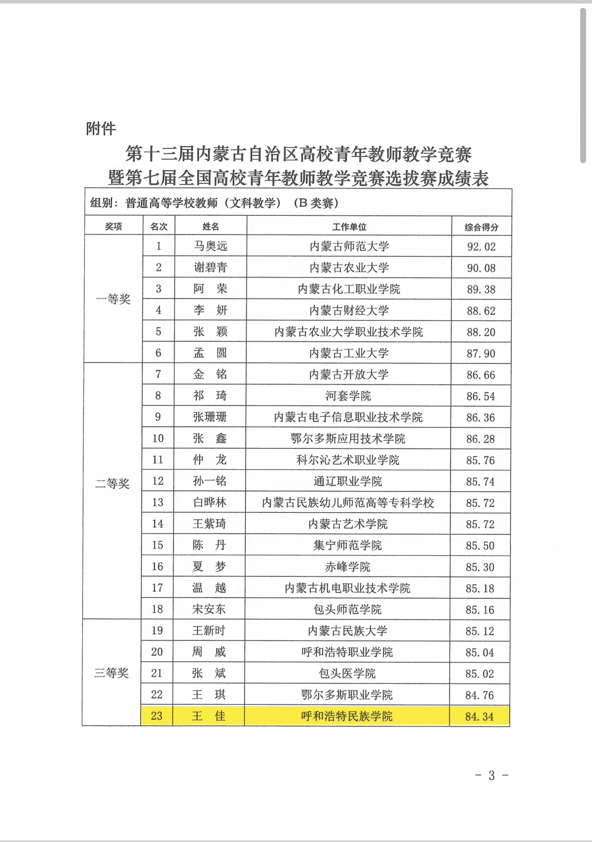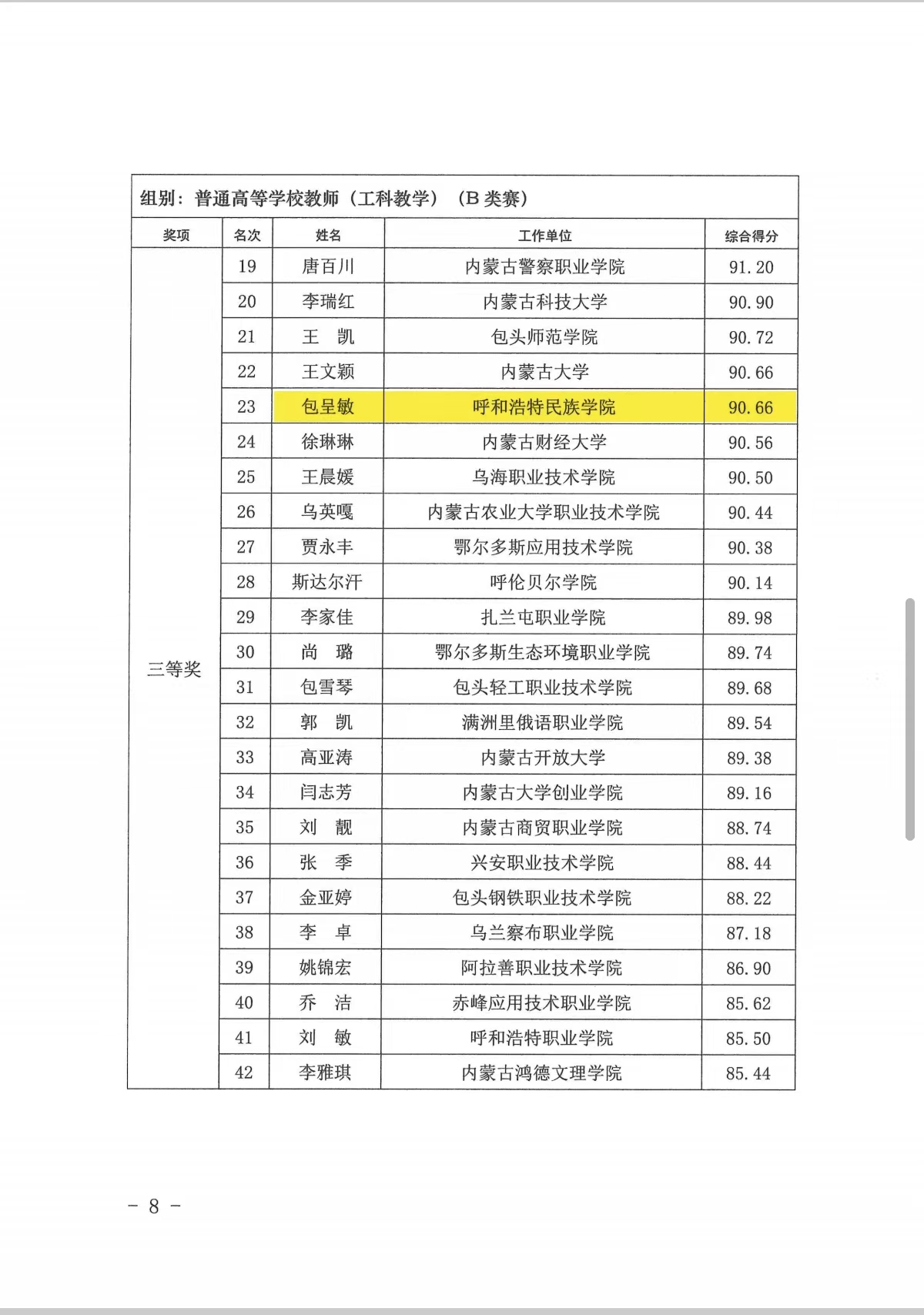 近日,我校教師在第十三屆內蒙古自治區高校青年教師教學競賽暨第七屆全國高校青年教師教學競賽選拔賽中取得了優異成績。