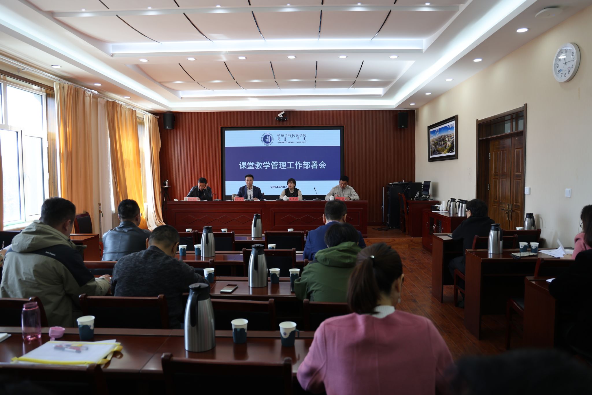 為進一步加強課堂教學管理,抓好教風學風建設,打造良好育人環境,提高人才培養質量,10月10日,學校在辦公樓424會議室召開課堂教學管理工作部署會議,校黨委委員、副校長額爾敦布和主持會議并講話。