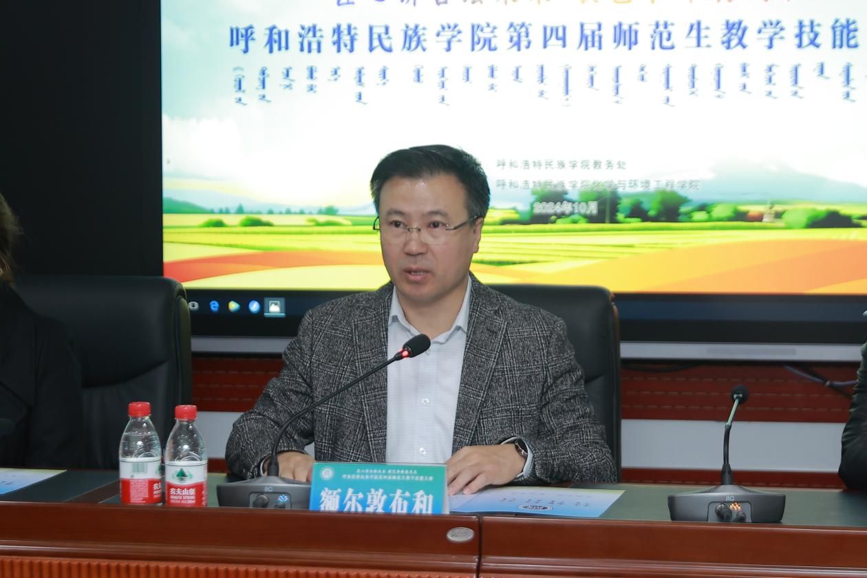 校黨委委員、副校長額爾敦布和出席開幕式并致辭,他指出,過去三屆大賽都涌現出一批批教學新星,他們以獨特的視角解讀教材,以創新的方法啟迪思維,用真摯的情感觸動心靈。這些成功的案例,為今天的比賽樹立了標桿,激發了更多的可能。參賽選手們要通過這場技能大賽,以教學為媒,以熱情為筆,繪制屬于自己的教育藍圖。作為未來的教育工作者,一要做到勇于創新,敢于嘗試;二要做到關注學情,因材施教;三要做到情感投入,以德化人。希望大家懷揣著對教育的熱愛與敬畏,牢記師范生的責任和使命,堅定“弘揚教育家精神,做新時代大先生”的理想信念,不忘初心,砥礪前行,在教書育人的道路上留下堅實的足跡,綻放出最耀眼的光芒。