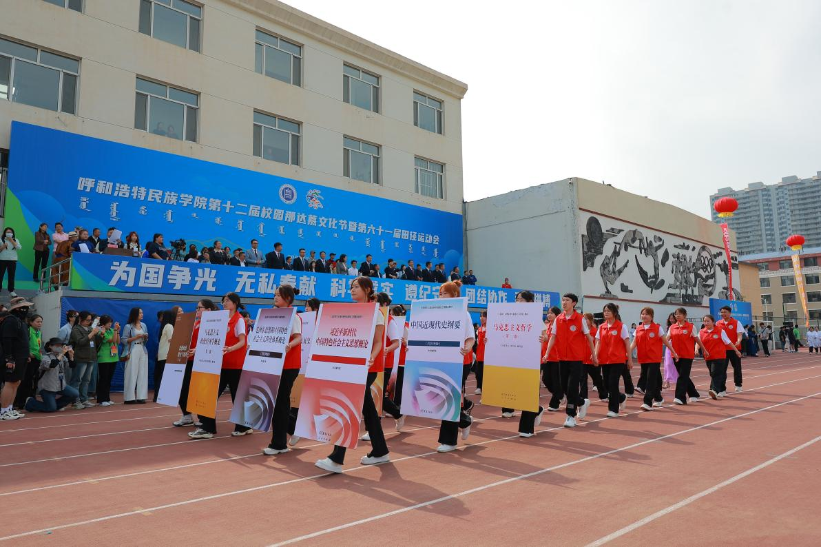 各學院代表隊依次入場,師生身著節日盛裝,逐一經過主席臺接受檢閱。大家精神抖擻、英姿勃發,展現了呼民院人朝氣蓬勃、銳意進取、積極向上的精神風貌。