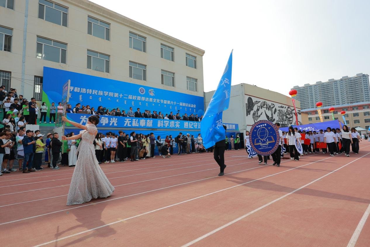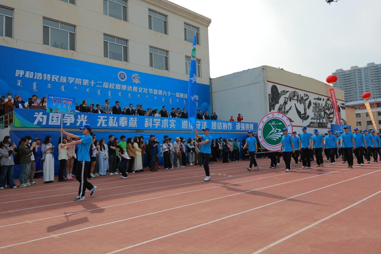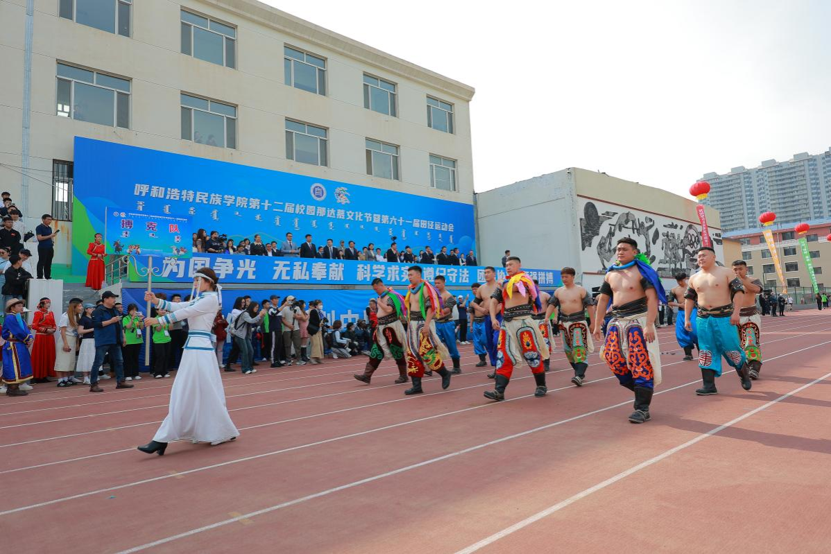 校園夏日,綠意昂揚。5月28日上午,學校舉辦第十二屆校園那達慕文化節暨第六十一屆田徑運動開幕式。校黨委書記劉九萬,黨委副書記、校長王敏,黨委副書記格根哈斯,黨委委員、紀委書記、監察專員王冬梅,黨委委員、副校長高喜天、劉瑞鴻、額爾敦布和、雙虎以及各部門、各學院主要負責人出席開幕式。自治區財政廳、天津工業大學、地方語言文字研究應用中心(內蒙古民族團結雜志社)、內蒙古自治區測繪地理信息中心、內蒙古自治區住房資金中心、呼市公交公司、呼市中醫蒙醫醫院的相關領導和嘉賓也蒞臨活動現場。開幕式由王冬梅主持。71萬+人次觀看現場圖片直播,內蒙古日報、內蒙古新聞網、草原云等多家自治區主流媒體各類平臺宣傳發布我校此次活動。