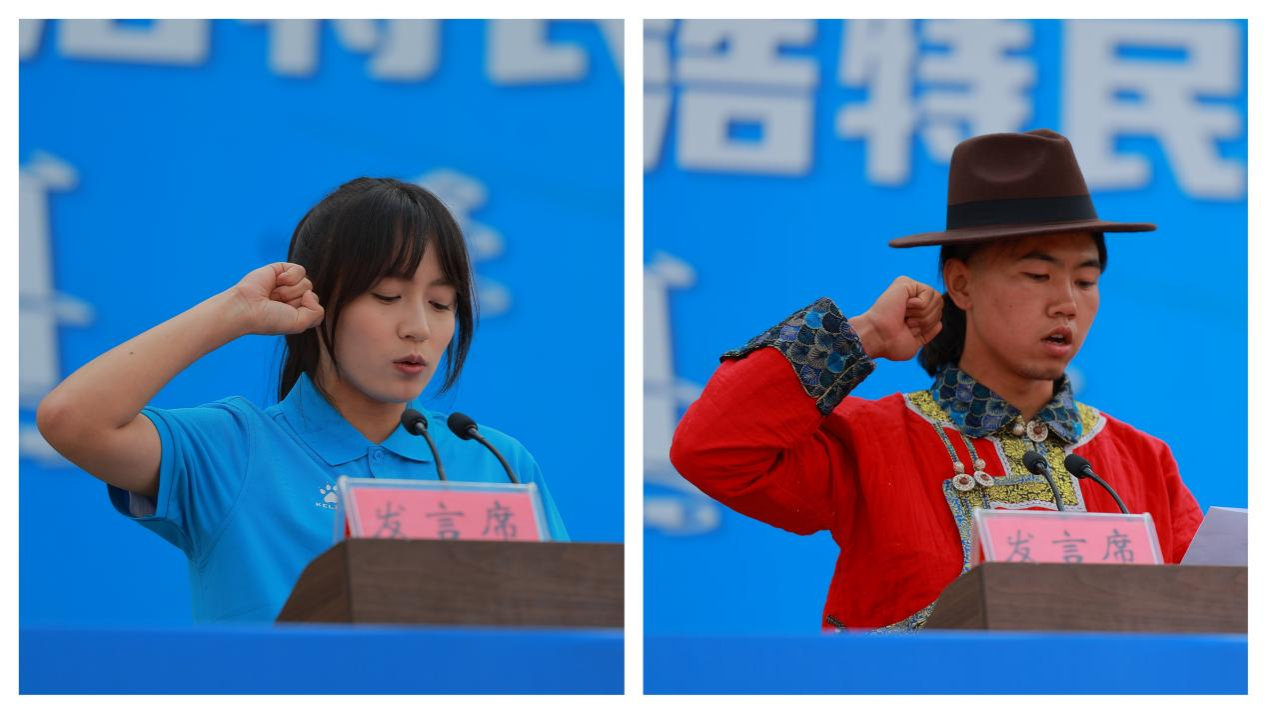裁判員代表姜曉陽同學、運動員代表奈日格勒同學進行了莊嚴宣誓。