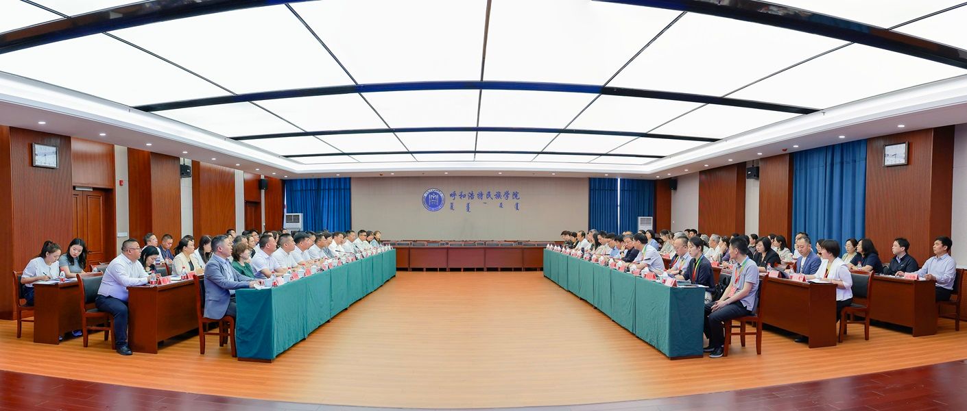 劉九萬致歡迎辭,對學(xué)校歷史沿革、辦學(xué)方向、辦學(xué)特色、專業(yè)建設(shè)、發(fā)展思路等方面進(jìn)行了匯報。他表示,學(xué)校堅(jiān)持社會主義辦學(xué)方向,以鑄牢中華民族共同體意識為主線,落實(shí)立德樹人根本任務(wù),扎根內(nèi)蒙古,輻射周邊,服務(wù)民族地區(qū)基礎(chǔ)教育、服務(wù)地方經(jīng)濟(jì)社會高質(zhì)量發(fā)展,努力建設(shè)特色鮮明、區(qū)域高水平應(yīng)用型民族大學(xué)。
