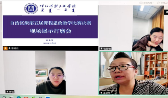 為提升我校入圍首屆京津冀蒙本科高校課程思政教學比賽暨第五屆內蒙古自治區本科高校課程思政教學比賽決賽教師競技水平,12月3日晚,教務處邀請銀齡教師王立華教授,針對參賽教師現場展示環節開展了線上打磨活動,以期通過精準“把脈”,助力參賽者優化教學展示方案,提升課程思政育人實效。