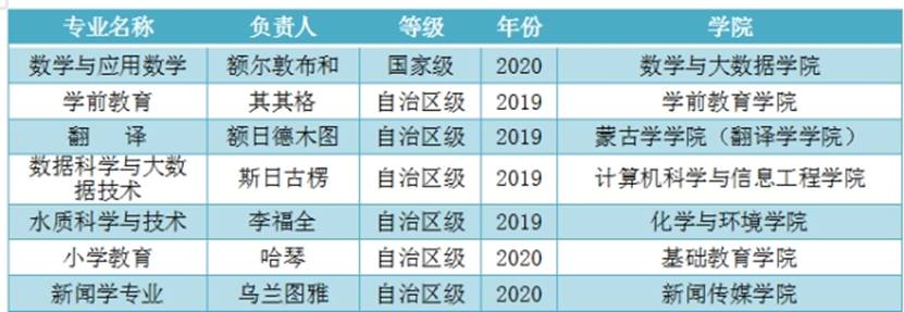 和衷共濟,系心民院。目前為止,我校現有國家級一流本科專業建設點1個和自治區級一流本科專業建設點6個。數學與應用數學專業獲批為國家級一流本科專業建設點是學校專業建設優質發展的重要標志,也是人才培養工作提質增效的重要體現。2021年是學校“十四五”開局之年,國家級一流專業建設取得的優異成績,對學校提升整體辦學實力,提高學校綜合競爭力,建設國內一流的特色鮮明的應用型民族院校有著極為重要的意義。學校將繼續對標要求,完善專業建設規劃、持續提升專業水平、發揮示范領跑作用,助推呼和浩特民族學院全面發展。