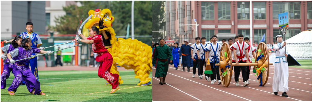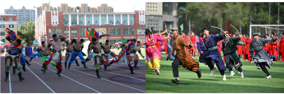 學院將國家首批非物質文化遺產“那達慕”作為文化育人核心載體,已連續舉辦12屆“校園那達慕文化節”,獲評“內蒙古自治區校園文化精品項目”,并獲得過中國教育報專題報道。活動以“競技+文化+民族團結”為核心,開幕式設火炬傳遞、民族歌舞表演,競技環節涵蓋博克、布魯、射箭、蒙古象棋、布魯、沙嘎等傳統項目,同時推動“民族服飾時尚化”,師生身著傳統與現代融合設計的蒙古袍參與,既保留原生態文化韻味,又展現多民族交融活力。這一品牌活動不僅成為弘揚蒙古族傳統文化的重要平臺,更強化了民族團結教育,讓民族傳統體育在校園煥發時代新活力。
