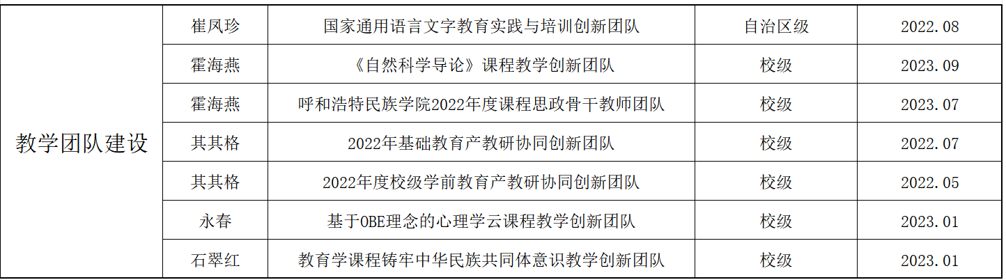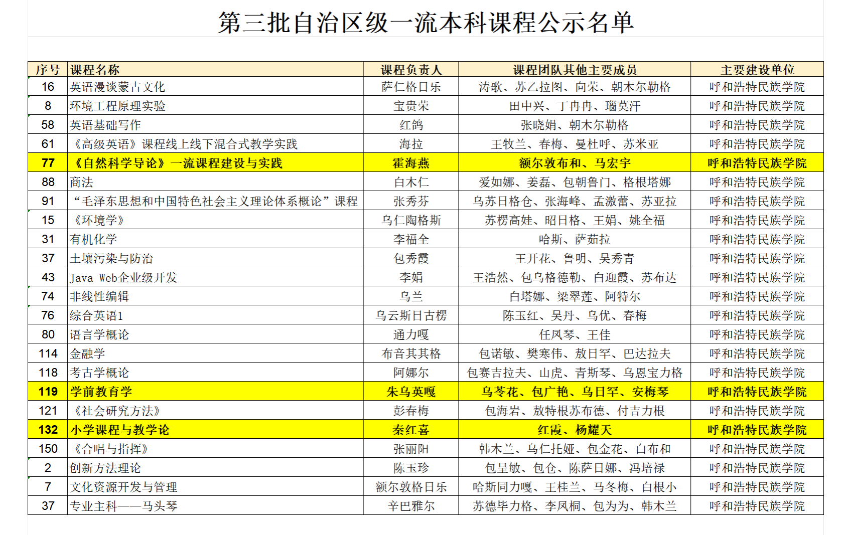 2019年教育學(xué)一級(jí)學(xué)科獲批國(guó)家民委重點(diǎn)建設(shè)學(xué)科;2020年小學(xué)教育專(zhuān)業(yè)獲批自治區(qū)級(jí)一流本科專(zhuān)業(yè);2022年學(xué)前教育專(zhuān)業(yè)獲批國(guó)家級(jí)一流本科專(zhuān)業(yè)建設(shè)點(diǎn);2024年獲批教育碩士點(diǎn)建設(shè)單位;2025年獲批1門(mén)國(guó)家級(jí)一流課程和2門(mén)自治區(qū)一流課程;