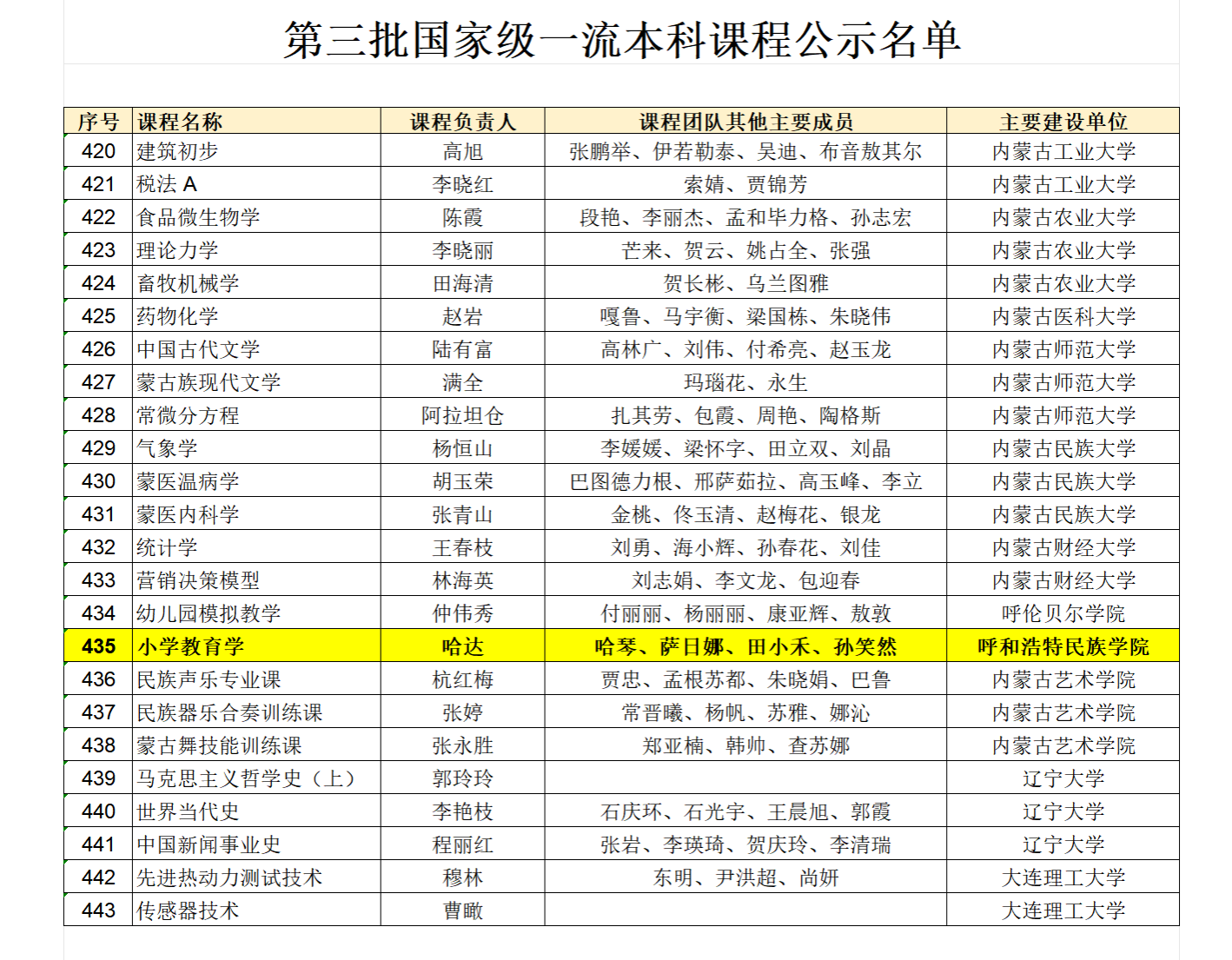 建設(shè)國(guó)家級(jí)一流課程《小學(xué)教育學(xué)》及自治區(qū)級(jí)一流課程《小學(xué)課程與教學(xué)論》《教育學(xué)原理》《自然科學(xué)導(dǎo)論》《學(xué)前教育學(xué)》等5門(mén)精品課程。形成基礎(chǔ)理論+實(shí)踐能力+創(chuàng)新素養(yǎng)的課程群體系,為邊疆地區(qū)基礎(chǔ)教育人才培養(yǎng)提供核心支撐。