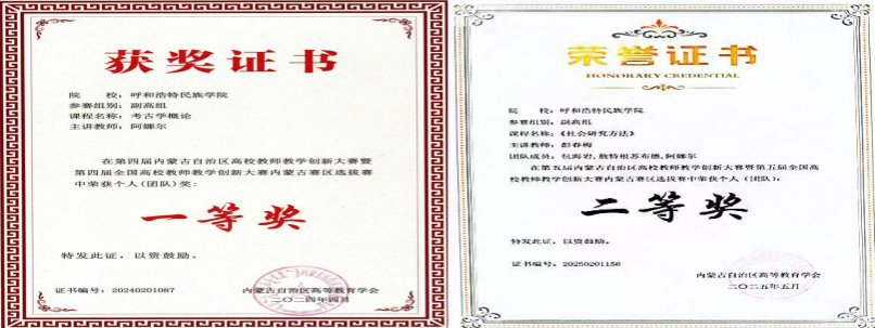 學(xué)院以提升人才培養(yǎng)質(zhì)量為核心目標(biāo),積極推進(jìn)課程建設(shè)與教學(xué)能力的協(xié)同提升。課程建設(shè)成果斐然,《田野調(diào)查》等3門課程榮獲校級(jí)“一流課程”稱號(hào),《考古學(xué)概論》等2門課程則獲得自治區(qū)級(jí)“一流課程”認(rèn)定,形成了梯度化的優(yōu)質(zhì)教學(xué)資源體系。教師在各類競(jìng)賽中表現(xiàn)卓越,1人斬獲自治區(qū)高校教師創(chuàng)新大賽一等獎(jiǎng),1人獲得二等獎(jiǎng),另有1人榮獲全區(qū)課程思政大賽專業(yè)教育二等獎(jiǎng),充分展現(xiàn)了學(xué)院教師的雄厚實(shí)力。課程與師資的雙向提升,有效強(qiáng)化了教學(xué)競(jìng)爭(zhēng)力,為學(xué)科發(fā)展和高素質(zhì)人才的培養(yǎng)奠定了堅(jiān)實(shí)基礎(chǔ)。