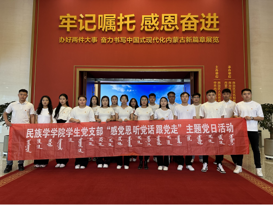 為深入學(xué)習(xí)貫徹習(xí)近平新時代中國特色社會主義思想,提高學(xué)生黨員政治素質(zhì)和黨性修養(yǎng),進一步增強廣大學(xué)生黨員“ 感黨恩 聽黨話 跟黨走”的思想自覺和行動自覺,4月18日下午,民族學(xué)學(xué)院學(xué)生黨支部全體黨員前往內(nèi)蒙古展覽館開展“感黨恩、聽黨話、跟黨走”主題黨日活動,參觀“牢記囑托 感恩奮進”主題展,重溫入黨誓詞。