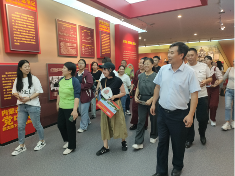 會后,烏日根巴雅爾書記和桂蘭老師帶領家長們參觀了鑄牢中華民族共同體意識教育館、校史館以及學院辦公場所。這次參觀讓家長們更加直觀地了解了學院的教育環境和文化氛圍,也讓他們對學院的教育理念和教育方式有了更深入的了解。