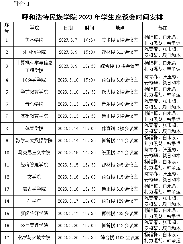 關于召開呼和浩特民族學院2023年 學生座談會的通知