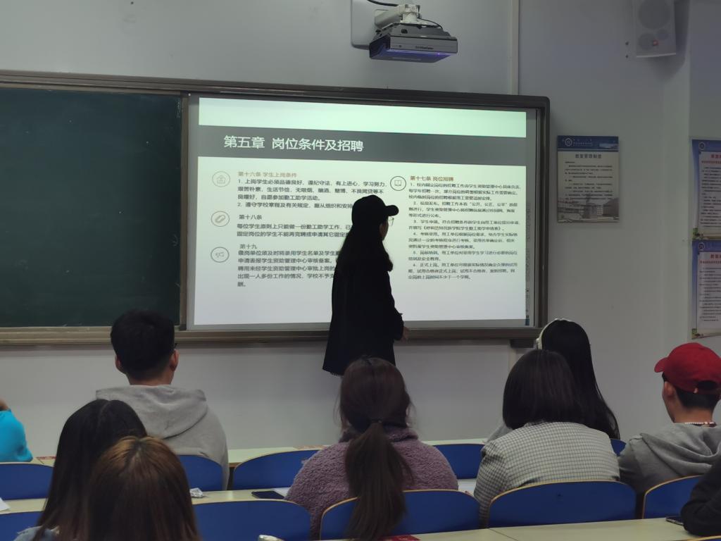 會議詳細解讀了《呼和浩特民族學院學生校內勤工助學工作管理辦法》,進一步強調了制度規范和工作要求,針對勤工助學工作中所需的禮儀規范對同學們進行了培訓,并廣泛聽取了同學們關于勤工助學管理過程中所存在問題的意見和建議。