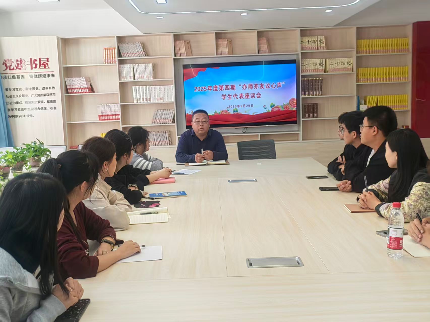 9月29日,學生工作部組織17個學院學生代表在“一站式”學生社區“一學院一品牌”主題文化公寓黨團活動室召開2025年第四期“亦師亦友議心聲”學生代表座談會。