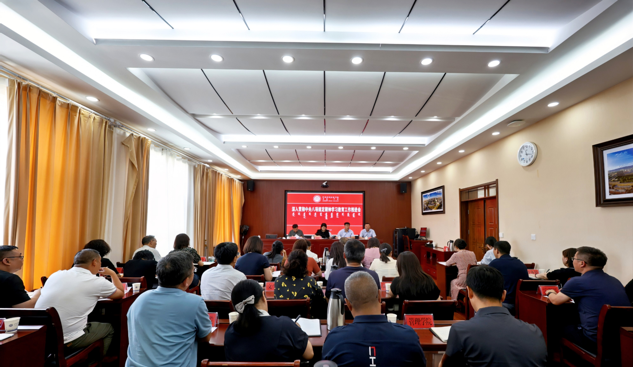 6月24日,學校舉辦深入貫徹中央八項規定精神學習教育工作推進會。校黨委副書記格根哈斯出席會議并講話,學習教育工作專班成員、各部門負責人和各學院黨總支書記參加推進會。