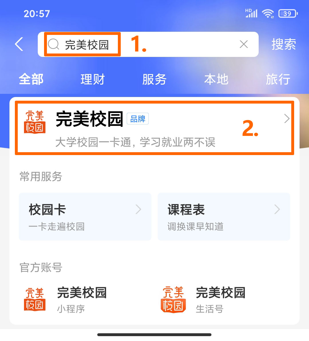支付寶桌面無(wú)完美校園,則搜索“完美校園”