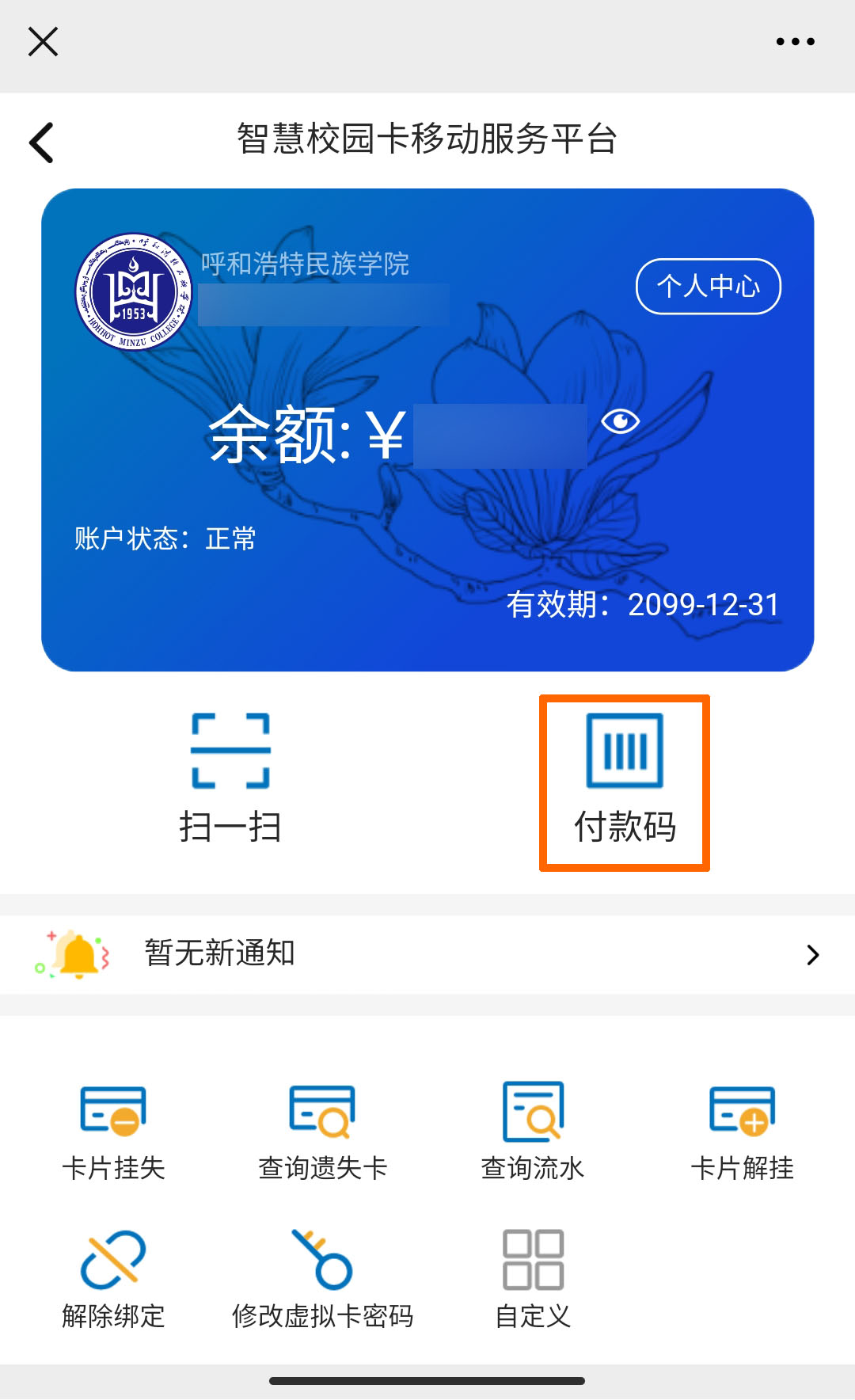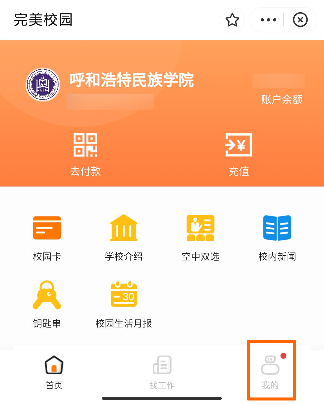 點(diǎn)擊“校園卡”綁定校園卡信息