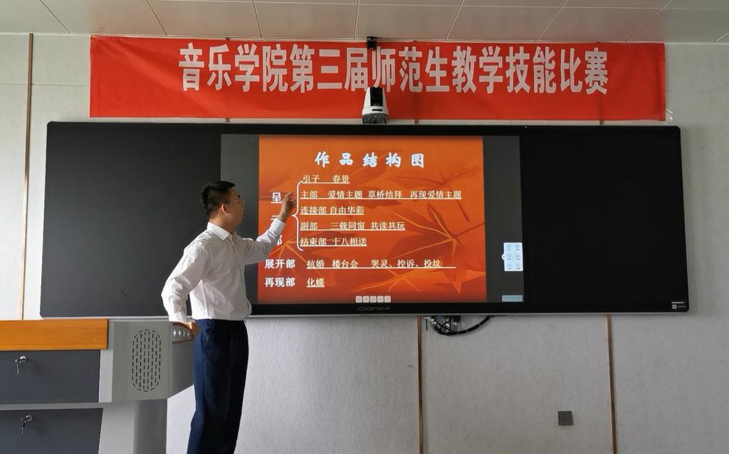 為了提高音樂(lè)學(xué)院師范類學(xué)生的學(xué)習(xí)及實(shí)踐應(yīng)用能力,促進(jìn)學(xué)生專業(yè)綜合能力的提升。作為《音樂(lè)課程與教學(xué)論》這門(mén)課程的教學(xué)成果展示,6月1日上午在尚智樓智慧教室601舉辦了“音樂(lè)學(xué)院第三屆師范生教學(xué)技能比賽”。