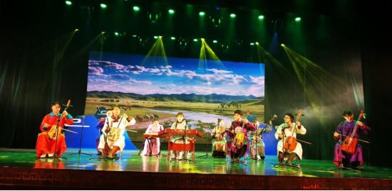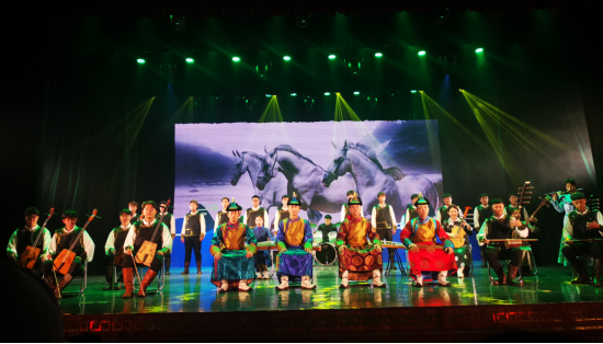 此次演出,音樂(lè)學(xué)院師生共呈現(xiàn)了5個(gè)民族特色節(jié)目。器樂(lè)合奏節(jié)目《馬蹄飛揚(yáng)》創(chuàng)新式的將笛子與馬頭琴、三弦結(jié)合;好來(lái)寶說(shuō)唱節(jié)奏輕快活潑,唱詞樸實(shí)優(yōu)美,語(yǔ)言形象動(dòng)人;動(dòng)人的蒙古族民歌《媽媽的恩情》、《登吉圖海》《褐色山的影子》讓人領(lǐng)略了科爾沁和鄂爾多斯音樂(lè)文化,感受了悠揚(yáng)的長(zhǎng)調(diào)魅力。節(jié)目展現(xiàn)了內(nèi)蒙古民歌文化深厚底蘊(yùn)與新時(shí)代創(chuàng)新,體現(xiàn)了內(nèi)蒙古民歌的多樣性和豐富性,帶給觀眾們一場(chǎng)聽(tīng)覺(jué)盛宴。