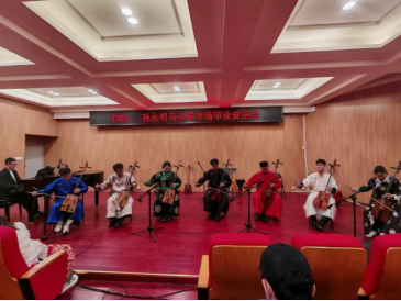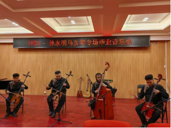 4月18日晚,呼和浩特民族學院音樂樓多功能廳內琴聲悠揚,2021級音樂表演班孫永明“鳴”主題馬頭琴個人專場畢業音樂會如期舉行。師從辛巴雅爾老師的孫永明,用精湛的琴技為觀眾帶來了一場充滿北疆韻味的音樂盛宴。