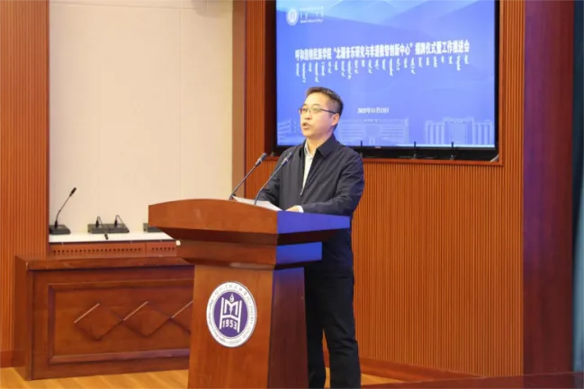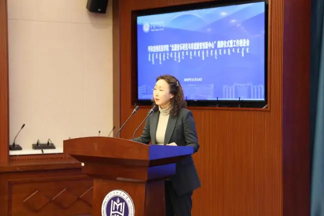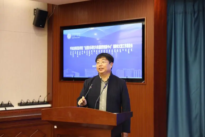 會議開始,音樂與舞蹈學院副院長韓木蘭致辭,她對蒞臨現場的領導、專家、學者及同仁表示誠摯感謝,并圍繞中心建設的背景、意義及學科支撐基礎展開闡述,表達了學院推動北疆音樂與數智技術深度融合的決心。隨后,學校科技處哈斯額爾德尼副處長從科研平臺建設、資源整合與項目協作等方面,對中心未來發展提出期望與支持舉措。