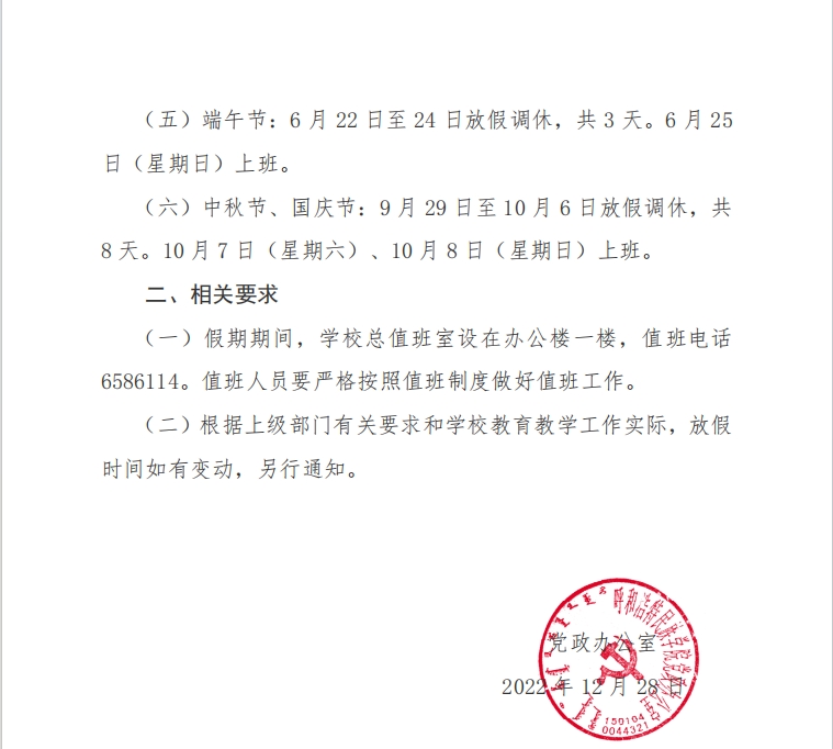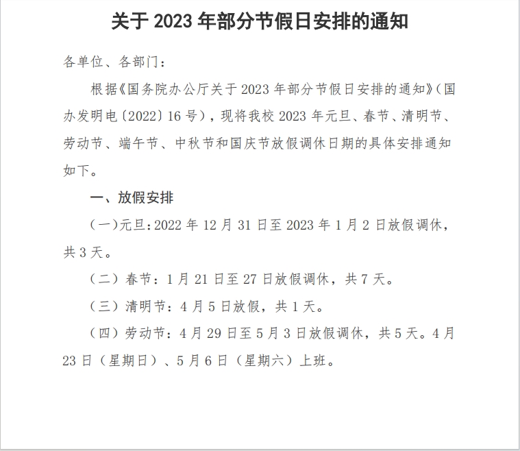 關于轉發《2023年部分節假日放假安排的通知》