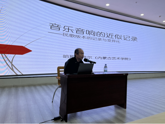 今天下午(2023年4月27日),音樂(lè)學(xué)院邀請(qǐng)了來(lái)自內(nèi)蒙古藝術(shù)學(xué)院的哈斯巴特爾副教授,在學(xué)校圖書(shū)館一樓報(bào)告廳舉辦了一場(chǎng)題目為《音樂(lè)音響的近似記錄——民歌版本的記錄與變異化》的學(xué)術(shù)講座,由齊占柱院長(zhǎng)、韓木蘭副院為首的音樂(lè)學(xué)院百余名師生到場(chǎng)聆聽(tīng)。